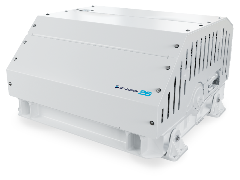 Seakeeper 26 is sized for vessels ~70-85 feet, up to ~75 tons. Unlike traditional external fins, the Seakeeper 26 has no outside appendages, requires only modest electrical power, and can be installed virtually anywhere on board.