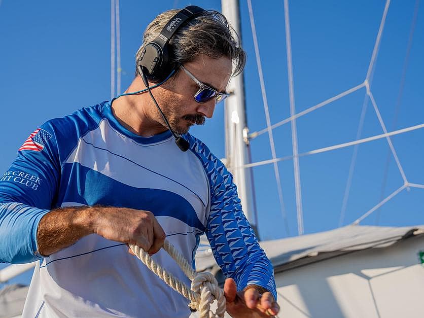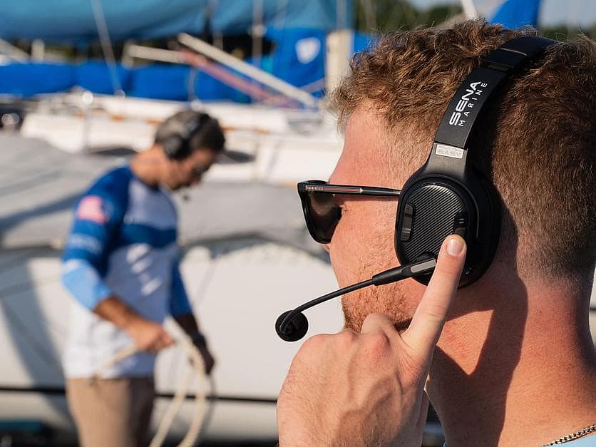 Nautitalk Easy is a lightweight, single-ear marine headset with Mesh Intercom™, swivel mic, and all-day battery for hands-free crew communication.