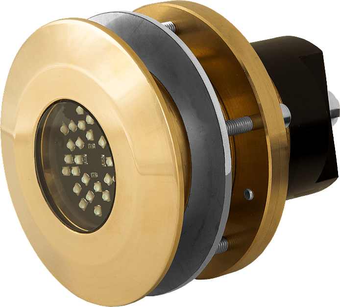 Aluminium Bronze underwater yacht light with replaceable LED core and an ultra-powerful 18,000-lumen output for marine use.