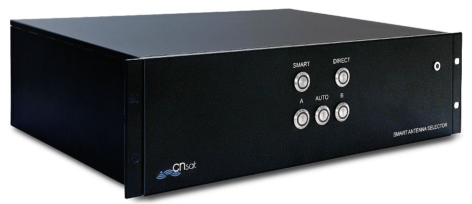 The Smart Antenna Selector allows to select the TV antenna according with the customer needs. Two array of satellite decoders can receive the signal from each antenna (Direct Mode) or the best signal chosen from the two antennas. The system reads signal level, azimuth position and tracking status from the antenna BDE. Manual and automatic modes are selectable from front panel and/or intuitive GUI. Compatible with KVH HD11 and TV Series antennas. Seatel TV and XX04 Series.