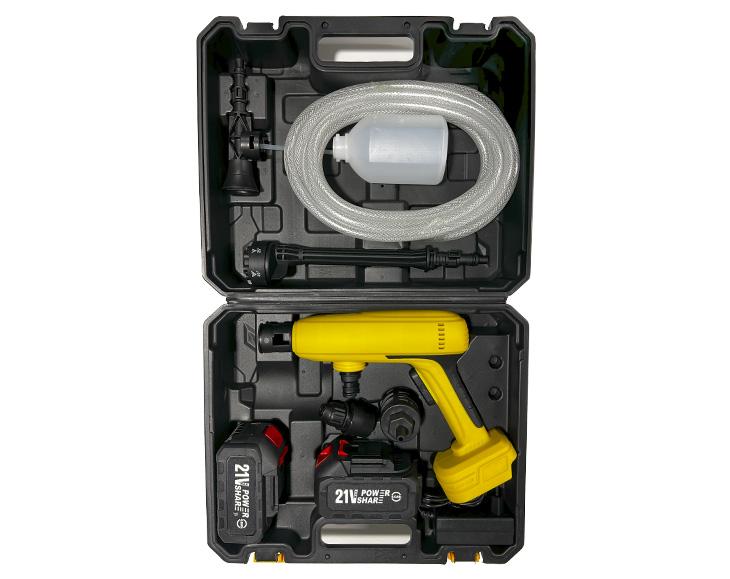 A battery-powered pressure washer for boats cleans surfaces with high-pressure water, ideal for removing marine grime, with a portable design.