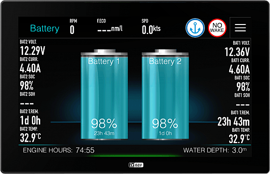 E500, E700 & E900 employs a sunlight readable LCD with 5", 7" and 9'' touchscreen. Simple and intuitive display for engine monitoring (fuel or electric) and navigation is easy to use and packed with features such as iAssistant, Media Player, Navionics charts, etc. Click&Go application with autorouting feature means less time reading manuals, more time on the water.