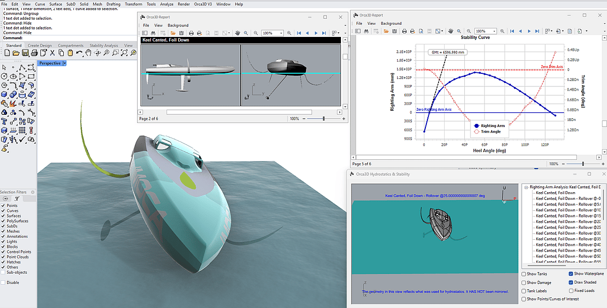 Naval Architecture in Rhino3D Orca3D streamlines the design process with intuitive marine modelling tools inside the friendly Rhino3D environment. Newly released ADVANCED STABILITY module addresses tanks & compartmentation, liquid loads, free surfaces, intact & damaged stability. Making for a unique naval architecture toolset inside Rhino3D.
