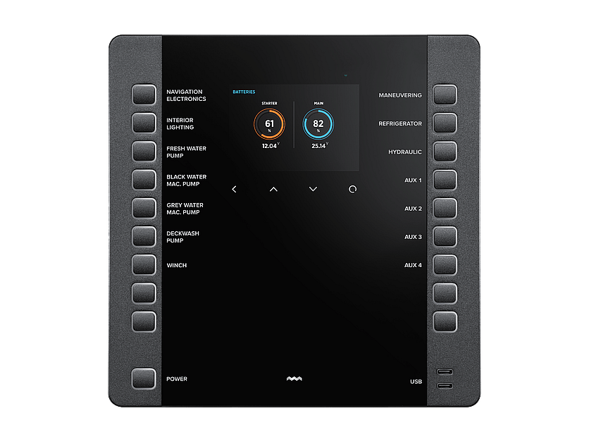 Nereide 2 — tactile digital switching with optically bonded display, built-in PICO monitoring, NMEA 2000, ultra-low draw, and modular expandability.