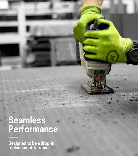 Waterproof structural sheathing from recycled plastics. Works like wood, outperforms plywood & alternatives, cost-competitive, and enables zero-waste.
