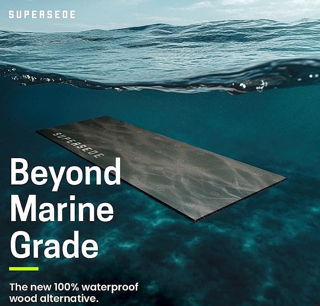 Supersede Marine Board is a structural sheathing panel made from recycled plastic waste, with superior strength, fastener retention, and durability over marine plywood, FRP, and foam composites. 100% waterproof, rot-proof, and non-toxic, it reduces deforestation and diverts waste from landfills. It works like wood—cut, drilled, laminated, and glued—while matching marine plywood pricing. Our off cut buy-back program recycles scrap and end-of-life panels for a closed-loop, zero-waste supply chain.