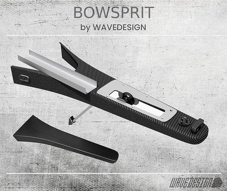 BOWSPRIT Designed for Code Zero and Gennaker Maximum sail efficiency, no compromise on anchoring. WAVEDESIGN’s bowsprit is engineered to enhance the performance of Code Zero and Gennaker sails, featuring a forward, reinforced tack point for optimal furling geometry. An integrated anchor roller ensures safe and efficient anchoring while keeping both sail and anchor clear of the pulpit.