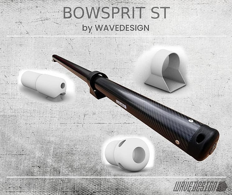 Carbon Bowsprit (Single Tube ST) Enables more efficient, simple, and enjoyable sailing. Complete mounting system designed to support a lightweight fixed bowsprit, ideal for flying asymmetric sails (Gennaker and Code Zero) with a tack point extended forward, beyond the bow pulpit. This improves sail performance and increases fore triangle area.