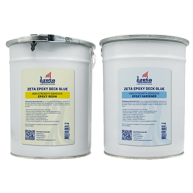 ZETA Brown Epoxy Deck Glue is a professional 2-component epoxy adhesive specifically developed to bond teak planks and panels on various surfaces like steel, aluminum, plywood and fiberglass. With its strong performance and easy application, it is ideal for both large and small marine projects where durability and precision are essential.