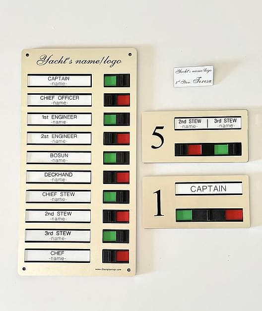 An IN and OUT board for yacht crew is a convenient tool that helps keep track of which crew members are currently on board and available for duty