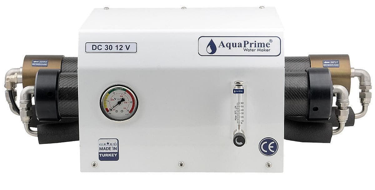 Aquaprime Watermakers are the devices for small-scale boats that can produce average of 30 and 60 litres of water per hour. Their biggest feature is that they work with 12 or 24 volts and can be fed from the battery without a generator. This makes them ideal for boats with limited space that require clean water. Thanks to their compact structure, they can be easily assembled without taking up much space.