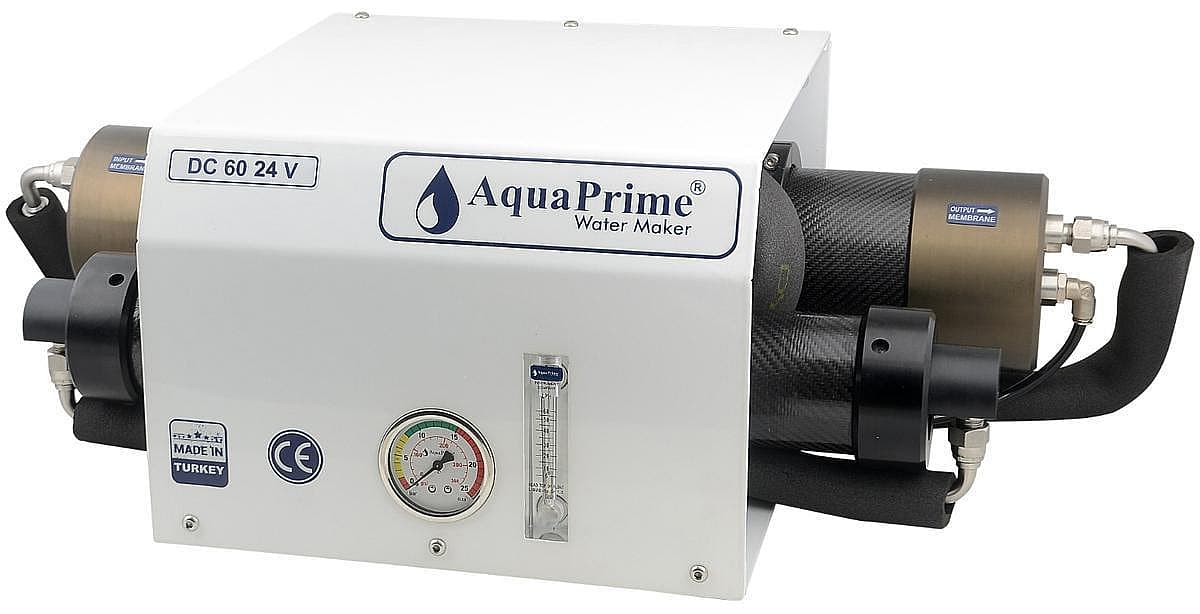 Aquaprime Watermakers are the devices for small-scale boats that can produce average of 30 and 60 litres of water per hour. Their biggest feature is that they work with 12 or 24 volts and can be fed from the battery without a generator. This makes them ideal for boats with limited space that require clean water. Thanks to their compact structure, they can be easily assembled without taking up much space.