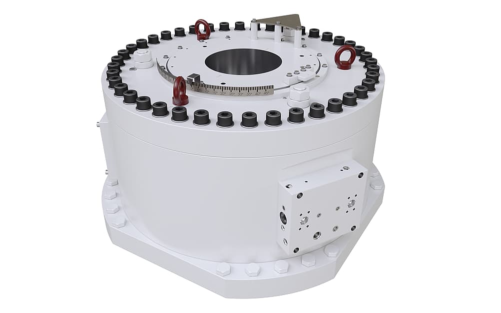 THE MOST MUSCLE, THE LEAST SPACE The high-end design consists of an integrated tiller and cylinder which generates the same high torque at all possible steering angles. It is safe to operate as it has only one rotating part. It also requires relatively low maintenance. This system is available for steering angles up to 65 degrees. The wide torque range of the rotary vane gives greater flexibility in choosing the rudder system. For all vessels with a torque range up to 1600 kNm.
