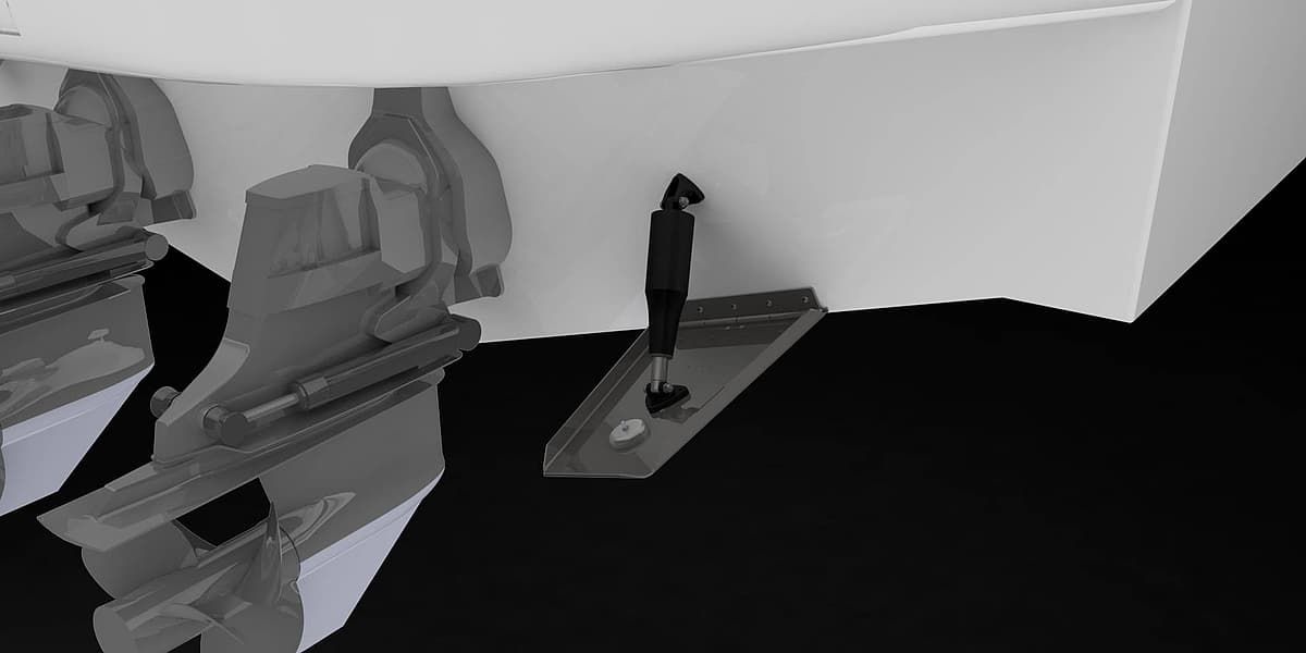 The trim tabs help the vessel to glide and reach cruising speed, generating a reduction in fuel consumption. Furthermore, in cases of lateral imbalances arising from the distribution of weight, it helps stabilize the vessel through adjustment of the bow and sides.