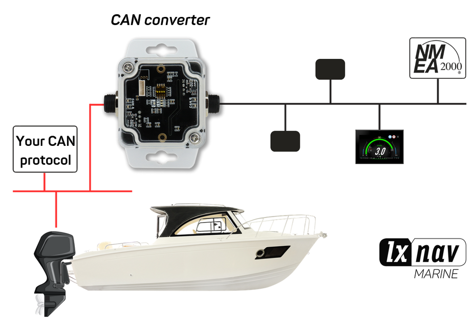The CAN2CAN converter is a versatile hardware solution that enables the conversion of proprietary CAN protocols to the NMEA2000 standard. Ideal for bo