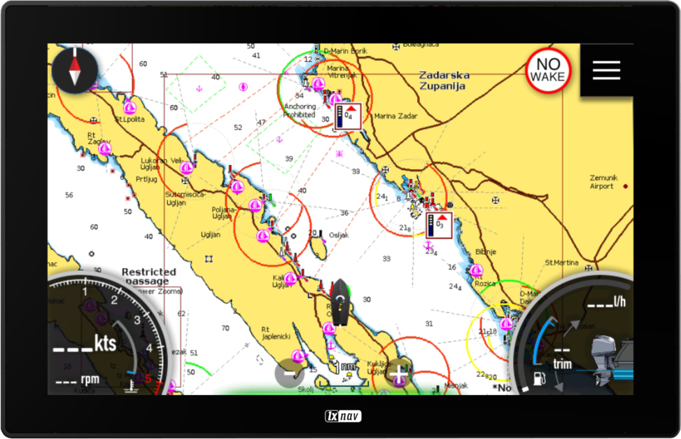 LXNAV brings aviation precision to the marine electronics with the E360, a 4" round touchscreen chartplotter. Featuring NMEA2000 connectivity, built-in charts, Navionics via SD card, engine data, and Fusion music control, it delivers an all-in-one solution in a compact, stylish design. With an intuitive, smartphone-like interface, the E360 simplifies marine dashboards while offering full functionality. A refined, space-saving choice for luxury boat builders or high-end refit projects.