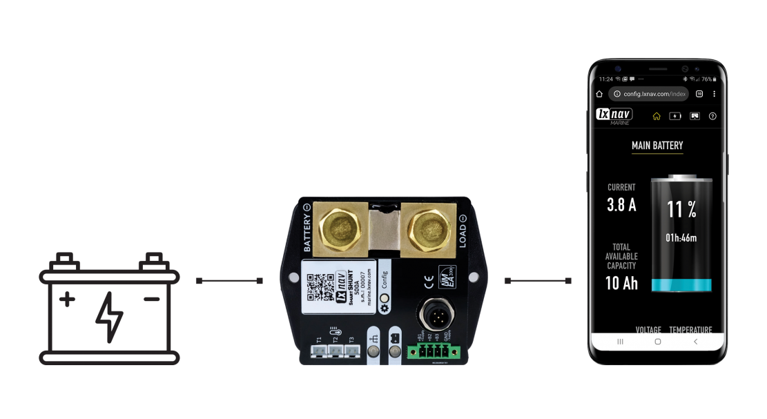 SmartSHUNT - Battery monitoring with NMEA2000 connectivity - Easy to configure and use via smartphone, scan QR code - Accurate state of charge and remaining battery energy - Supports various chemistries (GEL, ACIDE LEAD...) - Various voltages (12V, 24V, 32V, 36V, 48V) - Available 100A, 300A, 500A and 1000A