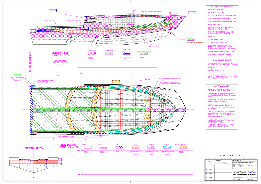 Structural Scantling and Report, Laminate Schedules and Material Selection. Structural design is responsible for ensuring the vessel's integrity, strength, and safety under all operational conditions. It involves meticulously calculating and defining every component's dimension and material properties to withstand forces like waves, wind, and internal loads, guaranteeing a robust and durable vessel that complies with international standards and classification society rules.