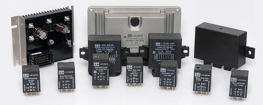 Our compact electronic controllers generally operate digitally and have inputs, outputs and interfaces. Use these components to control your vehicle, machines or systems. A programmable memory allows individual control instructions to be stored and executed via outputs.