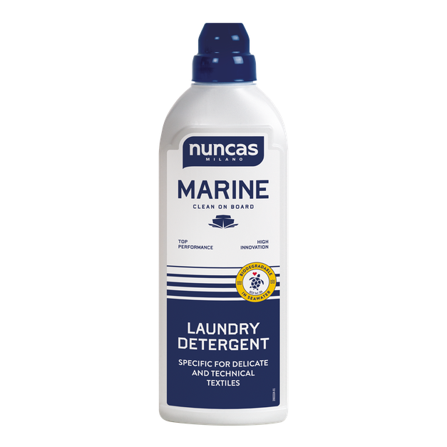 Laundry Detergent is made with vegetable-based active ingredients for washing and regenerating all technical boat garments, wetsuits, spray tops, accessories, covers, cushions and awnings. It removes sweat and moisture odors even at low temperatures, sanitises fabrics, and maintains elasticity while preserving UV filters and waterproof films. Its delicately perfumed, 100% biodegradable formula is safe for use in on-board washing machines.