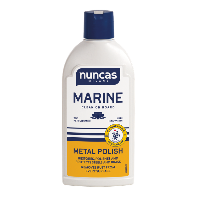 Nuncas Marine Metal Polish is the polishing cream with natural abrasive microparticles that removes stubborn encrustations from all metal surfaces on the boat. Its special formulation, based on carnauba wax and natural oils, guarantees shine and protection. It does not scratch or damage chrome surfaces.