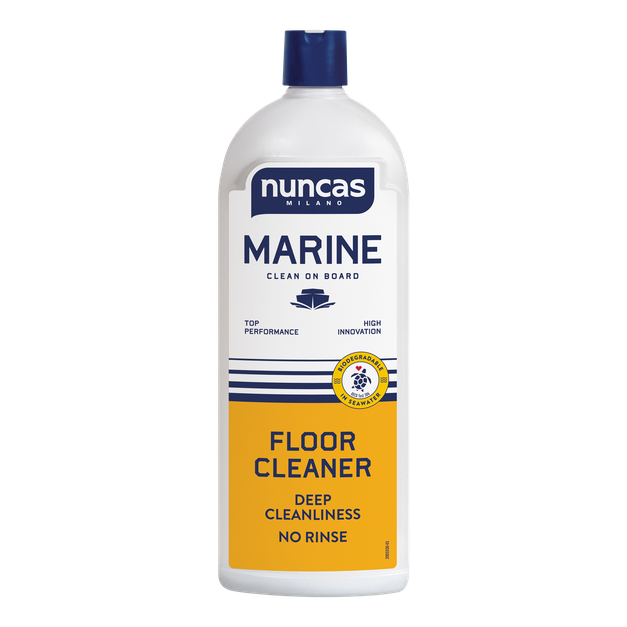Nuncas Marine Floor Cleaner is the exclusive detergent suitable for cleaning all types of interior boat floors. Its special formula, based on raw materials of natural origin and enriched with ethyl alcohol and bicarbonate, has an effective sanitising, degreasing and deodorising action without the need to rinse.