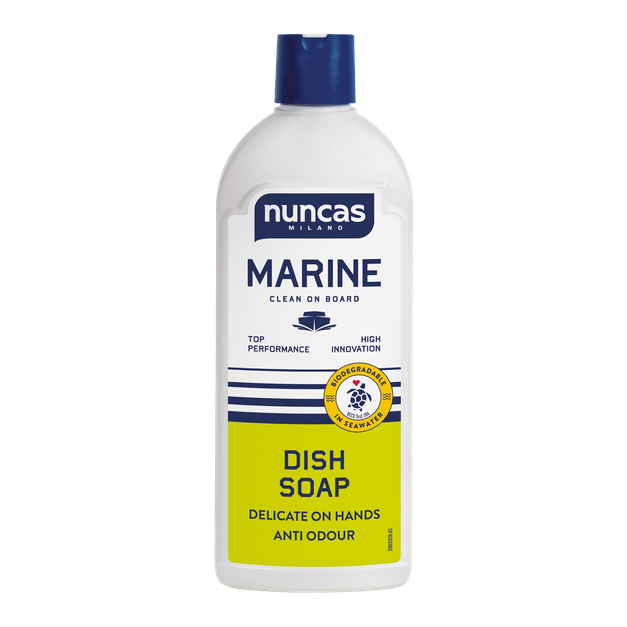 Nuncas Marine Dish Soap is the liquid detergent specifically designed for hand washing dishes. Thanks to its innovative formula based on active ingredients of vegetable origin, it effectively degreases and removes all kinds of dirt without leaving marks on glasses and cutlery. Its ease of rinsing makes for less water consumption. You can also safely use it to wash your hands while cooking.
