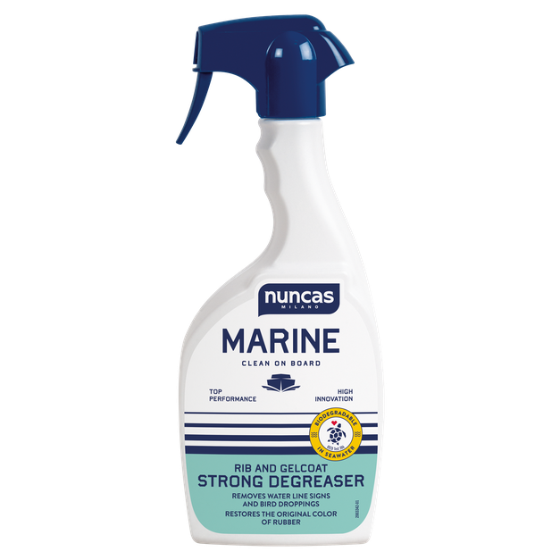 Nuncas Marine RIB & Gelcoat Degreaser removes dirt, marks and waterline stains, restoring shine and color to gelcoat and rubber surfaces.