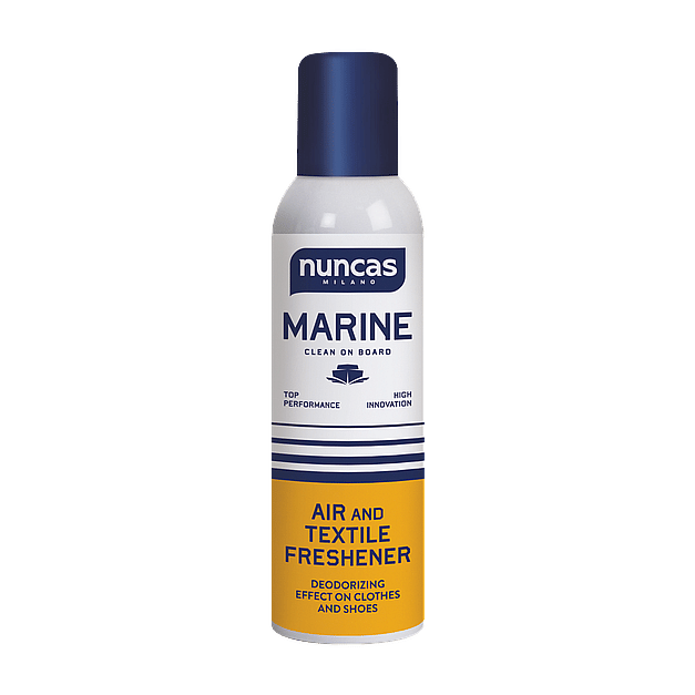 Nuncas Marine Air Freshener is a specialized deodorant that neutralises odor-causing molecules, restoring freshness and hygiene to garments and boat interiors. Ideal for freshly laundered clothes, wardrobes and closed spaces, it effectively removes unpleasant odors from food, smoke, and moisture. Its delicate, long-lasting fragrance leaves a fresh and clean scent, making it perfect for maintaining a pleasant atmosphere on board while ensuring clothes and fabrics stay fresh.
