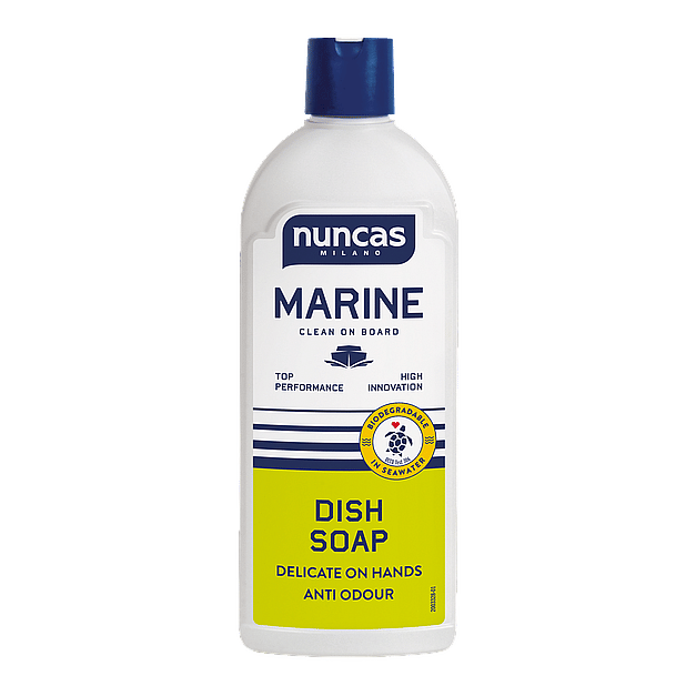 Nuncas Marine Dish Soap is the liquid detergent specifically designed for hand washing dishes. Thanks to its innovative formula based on active ingredients of vegetable origin, it effectively degreases and removes all kinds of dirt without leaving marks on glasses and cutlery. Its ease of rinsing makes for less water consumption. You can also safely use it to wash your hands while cooking.