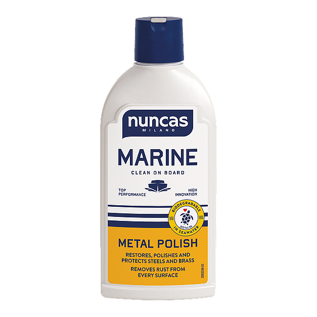 Nuncas Marine Metal Polish is the polishing cream with natural abrasive microparticles that removes stubborn encrustations from all metal surfaces on the boat. Its special formulation, based on carnauba wax and natural oils, guarantees shine and protection. It does not scratch or damage chrome surfaces.
