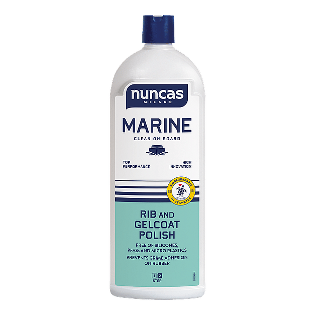 Nuncas Marine RIB & Gelcoat Polish is a universal product for polishing boats and dinghies in one easy step. Its biodegradable, microplastic- and silicone-free formula works on any hull type, providing long-lasting water repellency that reduces drag during navigation. It leaves rubber shiny while protecting it from dirt and weathering. Ideal for use after washing with Nuncas Marine RIB & Gelcoat Cleaner or after pickling with Nuncas Marine RIB & Gelcoat Strong Degreaser.