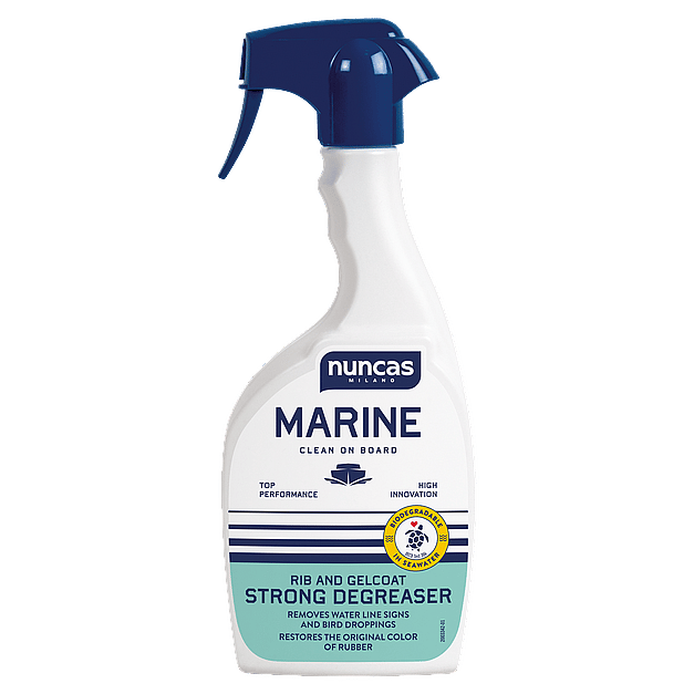 Nuncas Marine RIB & Gelcoat Degreaser removes dirt, marks and waterline stains, restoring shine and color to gelcoat and rubber surfaces.