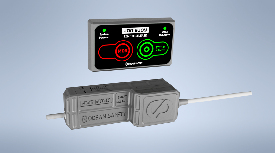 The Jon Buoy Mk 6 Smart Release, is an integrated system designed for seamless compatibility with the Jon Buoy Mk 6 Recovery Module, providing a reliable solution for man overboard situations. This system enables remote deployment from the bridge or a convenient onboard location, ensuring a swift and controlled release of the recovery module.