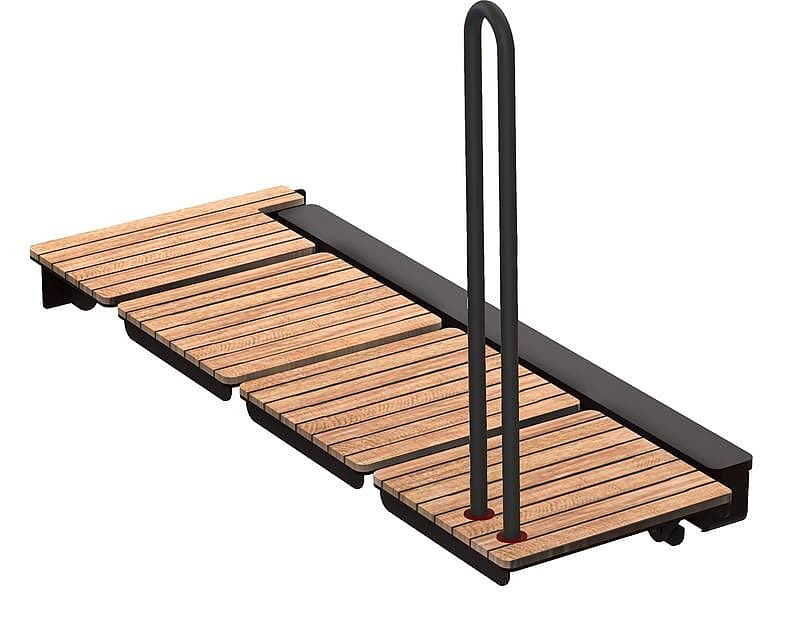 Automatic step system easily appliable to all boat types, both as a refit and as first installation. It is available in the hydraulic or electric version and its mechanism allows rise and descent from the dingy or small boat by means of a comfortable staircase instead of the usual stepladders which, in case of outboard motors might be difficult to use.