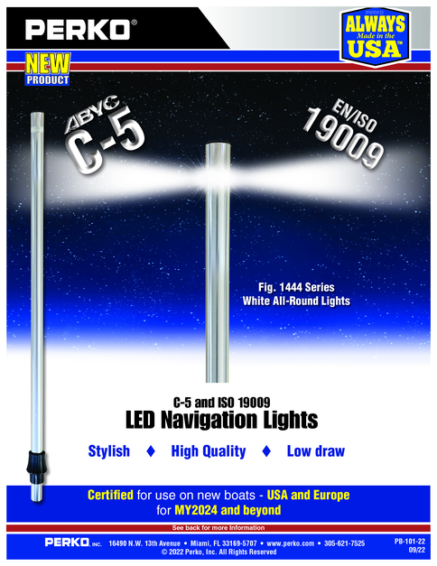 Perko is a private, fifth generation family-owned corporation. Vertically integrated, all products are "Made in USA". The company is ISO 9001:2015 registered. Perko is a leader in the manufacture of Navigation Lights, including LED. Select lights are EU/ISO 19009 and ABYC C-5 compliant.