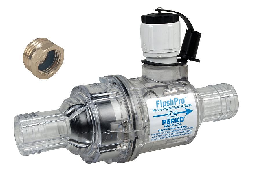 Flush Pro™ valves offer one of the easiest to use flushing systems available for inboard engines. Simply unscrew the Flush Pro™ cap, connect a standard garden hose, turn on the water and start your engine. The Flush Pro™ valve automatically pulls fresh water into the boat's cooling system - even if the boat is in the water - flushing out the entire cooling system with fresh water. When done, shut off the engine, turn off & disconnect the hose and replace the Flush Pro™ cap. Your engine is flus