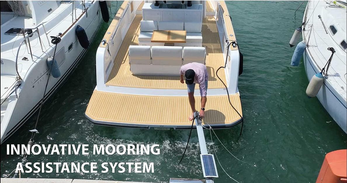 Moorsimply has patented the innovative electromechanical arm for mooring assistance. Fixed to the dock, it offers the mooring ropes.
