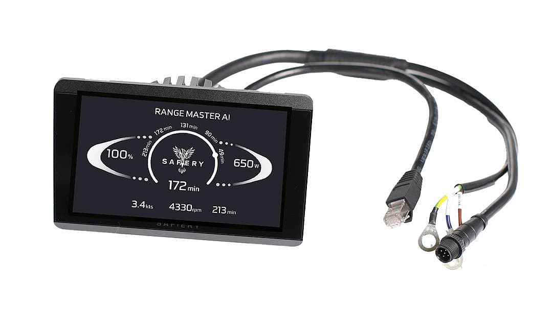Range anxiety has been a major barrier to adoption of battery electric boats. Traditional displays only report “battery state of charge,” which fails to address real-world operating conditions. RANGE MASTER AI solves this by integrating AI + sensor fusion to deliver practical, outcome-based insights: • Accurate range prediction based on speed, load, drag, water conditions, and driving style. • Two Way Communication - ready for remote autonomous control