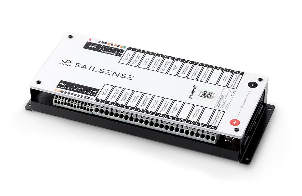Sailsense Powerail is a remotely updatable digital switching system, fully integrated into the Sailsense ecosystem. It supports 24 outputs (1A to 16A) for DC 12V or 24V, 8 analog/digital inputs for probes, and 3 voltmeter inputs for battery, windlass, and engine monitoring. With thermal disjunction protection, dimmable outputs, and detailed software logging, it offers automated, secure, and efficient energy management. Easily adaptable for new builds or retrofits.