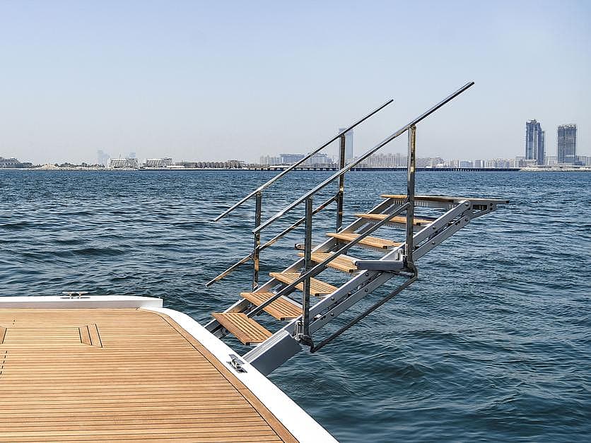Sanguineti ladders ensure safe, comfortable access: hydraulic, electric or manual, hull-integrated, from simple models to retractable ones.