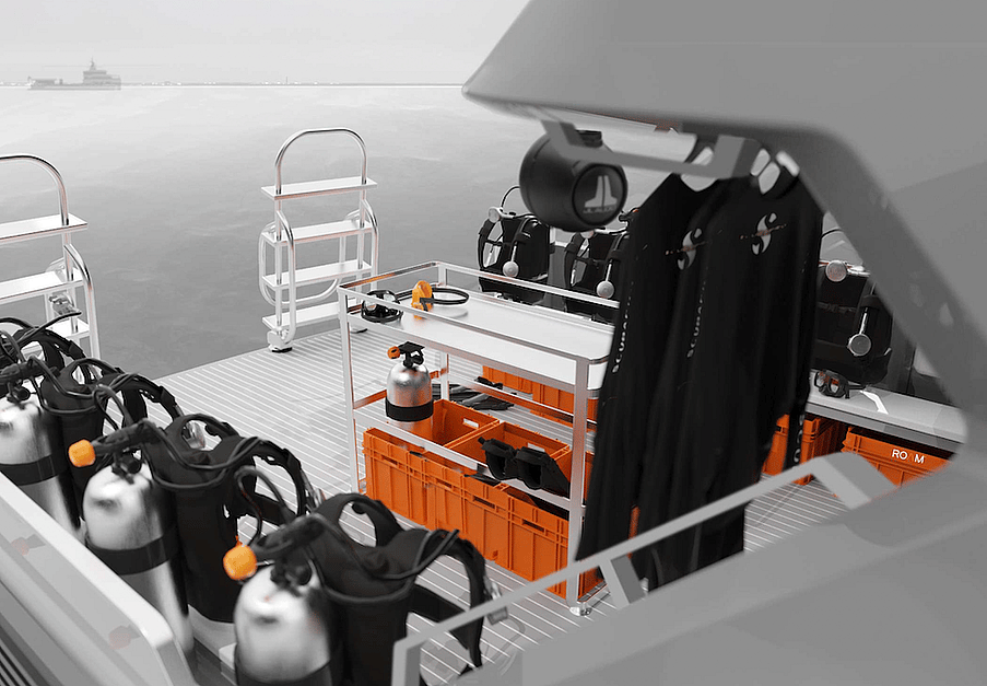 ROAM is the brainchild of Superyacht Tenders and Toys, working in partnership with Naval Architects Argo Navis. Born from clients increasing appetite for adventure and the desire to explore remote areas in safety and comfort. Carefully designed to offer maximum deck and storage space, ROAM Boats are perfectly suited to the dive and toy arena.