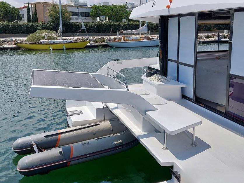 A true standard product on cruising catamarans, Tenderlift® hydraulic platforms are an additional living space without common measure. Positionable at all levels, they can serve as a cockpit extension, an additional deck or a swimming platform, as well as a submerged platform for diving. Tenderlift® hydraulic platforms have equipped more than 2000 catamarans. They are the perfect solution to lift tenders easily and safely.