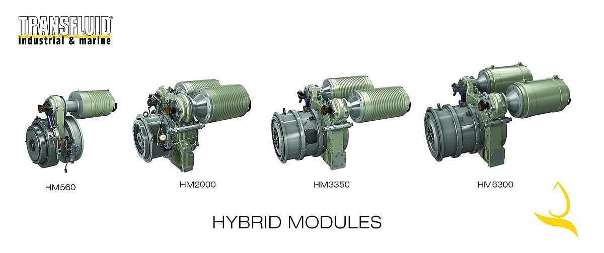 Transfluid Hybrid Moduls can be installed on any naval combustion engine on the market, both on new boats and on pre existing ones. Input Diesel power con range between 134 and 1650 hp, while the nominal electric power ranges between 8 and 260 kW. The Hybrid Moduls are suitable for any available transmission.