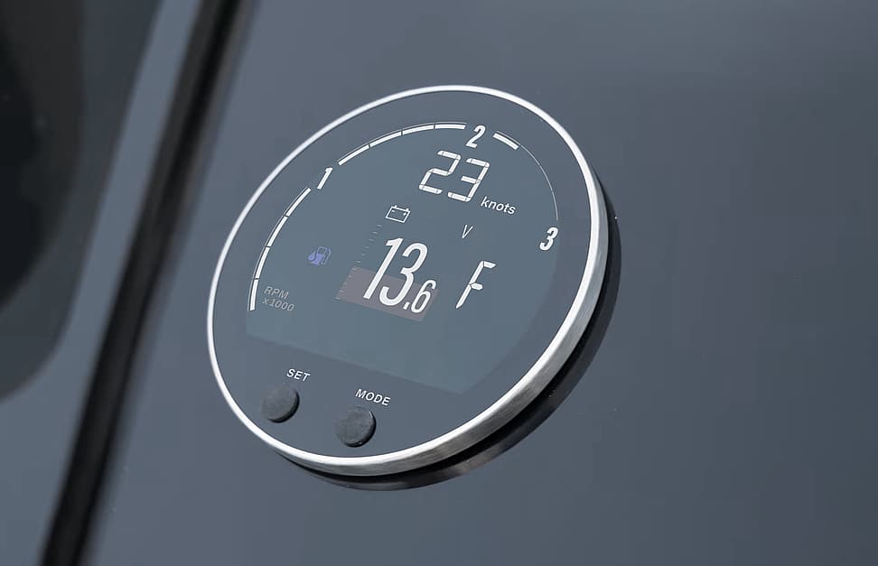 With a configurable dial scale of 3000 or 4000 RPM, the VMH 35-D is a compact display showing data from your engine, battery, tank, and GPS. It provides diesel engine info and alarms via the SAE J1939 bus or locally set through the menu. Supporting 12V and 24V systems, its EasyLink connectivity expands your dashboard with additional VMH 14 satellite displays. The high-performance GPS receiver adds speed, position, and heading data.