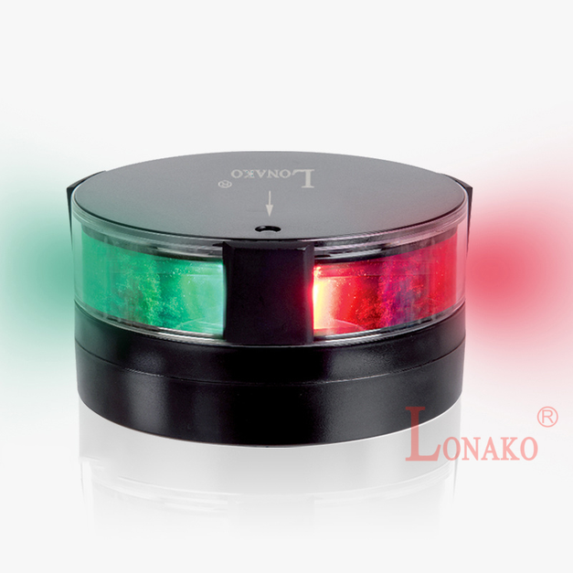 LNK-NS-RG is a red-green bi-color navigation light suitable for all types of vessels with a length < 20 meters. The light was supplied and controlled by a DC 12 / 24 V input wire and is activated by a switch panel control in the cab. Once the lights are turned on, they can emit 112.5° left-red and 112.5° right-green light of a light intensity more than 5.6 cd, with a visibility distance of 2N miles. The working consumption is less than 1.5W.