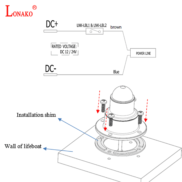 The LNK-LBL2 is a SOLAS compliant lifeboat interior light for installation in the interior compartments of lifeboats. The product is supplied by DC 12 / 24V power and controled by switch through the input cable. Once activated it will emit a constant light with average light intensity more than 7cd with over 12 hours for reading the instructions of life saving appliances, MED, USCG and CCS approved. Wire length 4 metres, customised.