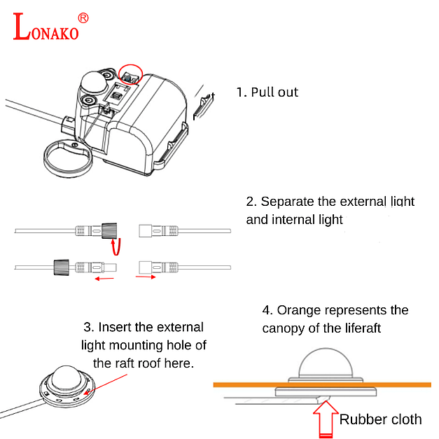 LNK-LR-01A is a MED/USCG approved lithium battery liferaft light for all types of liferafts. Interior light intergrated with battery body to reduce installation effort. The external light contains 3 LEDs and emits a flashing white light of more than 4.3cd for at least 18 hours (-30℃). Both external and internal light activates automatically when the liferaft is inflated; Manual switch allow the user to control its operation.