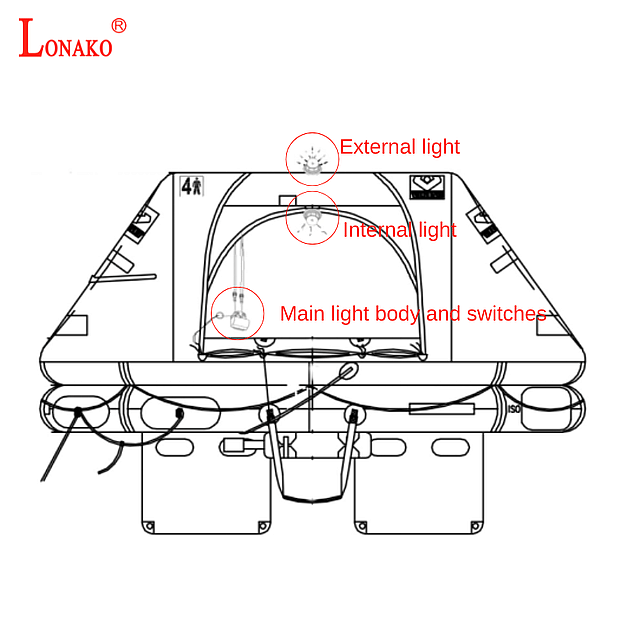 LNK-LR-02C is a MED/USCG-approved lithium battery-powered emergency light to be installed on a liferaft, with excellent performance and robustness. The external light can emit more than 4.3cd of light intensity for at least 18 hours at -30℃. The internal light provides a constant light of over 0.5cd. The internal light, external light, and main body are designed separately with manual switches that allow the user to control their operation. Inner and external light wire length can be customised.