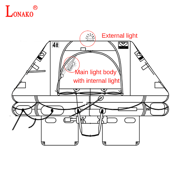 LNK-LR-03A SOLAS Liferaft Light is a lithium battery-powered emergency light to be installed on liferafts. The external light uses LONAKO Patented 3 LEDs that emit a light intensity of more than 4.3 cd for over 15 hours at -30°C. The interior light is integrated with the battery body and is compact, and the mounting clip is equipped for easy installation. The light wire lengths can be customised.